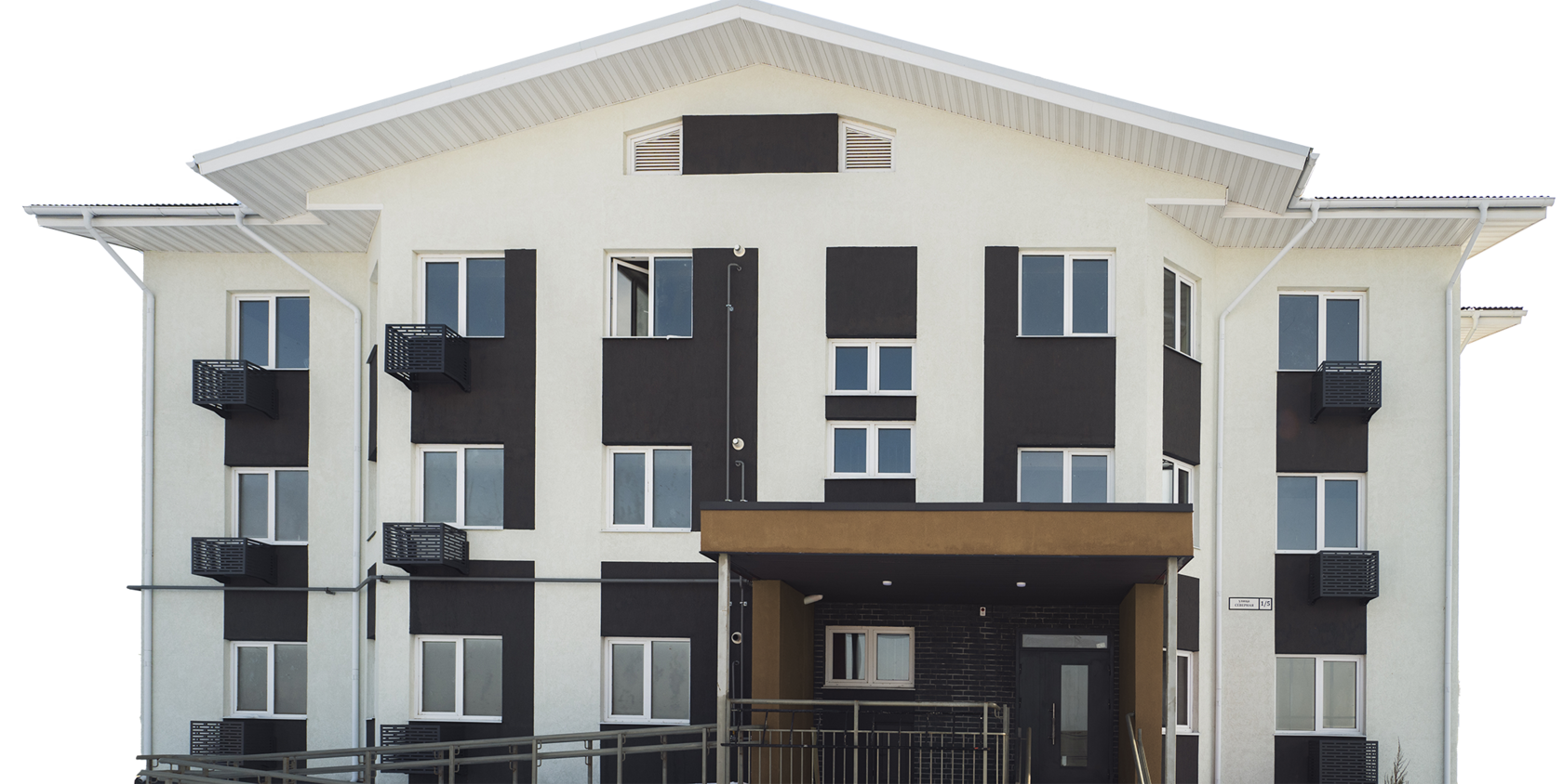 с фасадными корзинами для кондиционеров, создавая стильный и прочный облик здания.